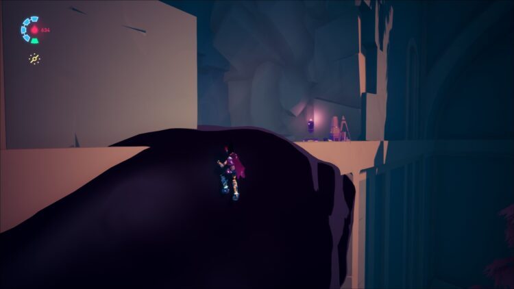 세 번째 보이드러너 보관함이 근처에 있습니다. 분수 구역을 나온 후 Cyd의 도관으로 향하십시오. 이 지역으로 들어선 출입구의 왼쪽에 있는 방금 내려온 레일을 타십시오. 이번에만 그래플 포인트에서 새총을 쏘고 검은 고리를 잡고 정상으로 올라가 다음 보관함을 찾으세요.