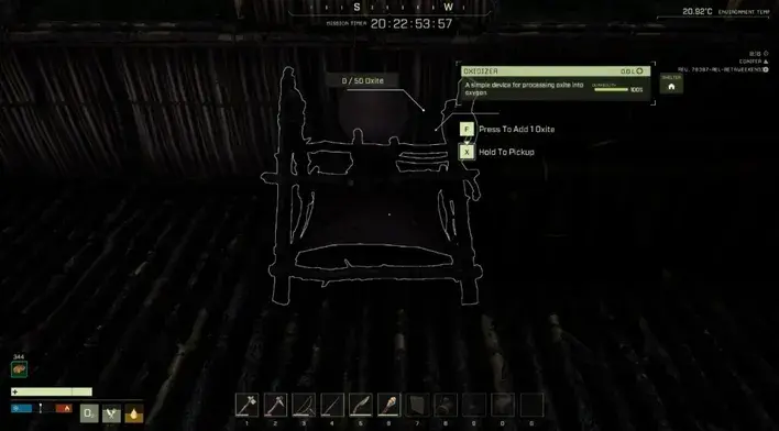 이 Oxite 예금은 산소 수준을 높이기 위해 조작하지 않고 사용할 수 있습니다. 인벤토리를 열고 Oxite Deposit을 산소 슬롯으로 옮기기만 하면 됩니다.