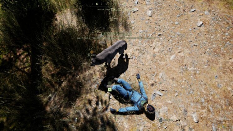 Livewire Terrain Scan 미션을 플레이하고 레이더 비콘 옆에 기적적으로 나타나는 화난 곰에게 감지됩니다.