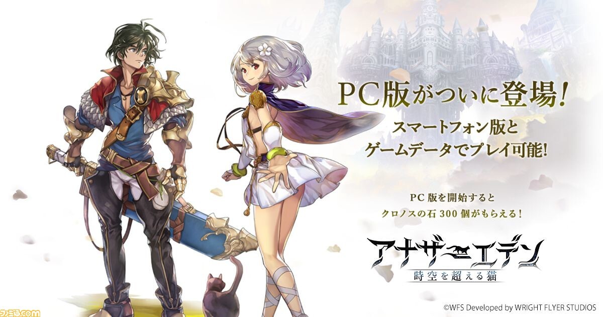 어나더 에덴 ~시공을 넘는 고양이~ PC판이 전달 개시. PC판은 스마트폰판과 게임 데이터의 계승이 가능. 크로노스의 돌 300개를 받을 수 있는 캠페인도 개최