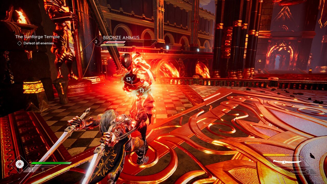 검을 찔러 넣으면 각 적의 체력이 그 위에 표시됩니다. 아무도 그들에게 빨간색 체력 표시줄을 설명할 필요가 없지만, 싸울 때 보고 싶은 적의 체력에 대한 흰색 윤곽선입니다. 이것은 SoulShatter로 알려져 있으며, 강한 공격으로 적을 공격하면 가벼운 공격 콤보를 수행할 때 윤곽이 표시된 영역 전체가 제거됩니다. "SoulShattering"으로 적을 죽이면 건강도 회복됩니다. SoulShattering은 빠른 처치에 매우 유용한 도구이며 항상 체력 바를 살펴보아야 합니다.