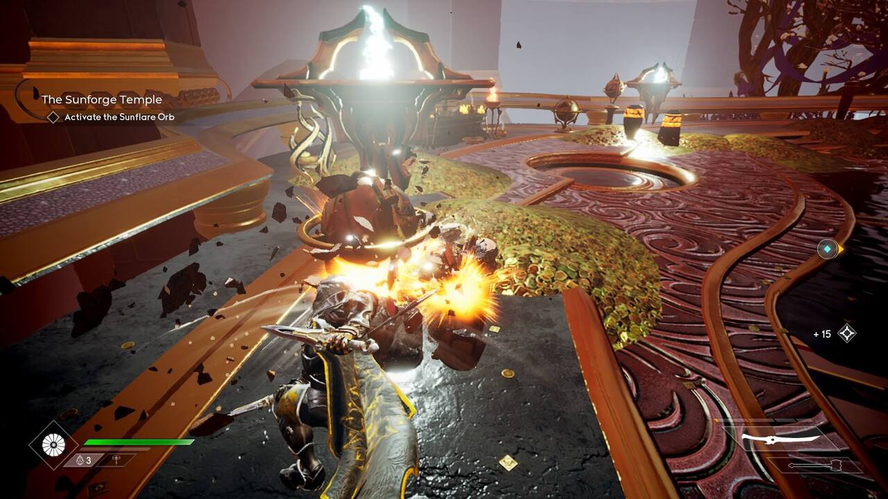 Godfall 은 자칭 Slasher Looter일 수 있지만, 더 적은 슬래싱이 당신을 위해 더 많은 것을 할 때가 많습니다. 전력 질주하거나 측면으로 빠르게 돌진하여 큰 스윙을 취소하는 것은 쉽지 않습니다. 즉, 칼에 찔리려고 하고 이미 공격을 가했다면 큰 타격을 받을 가능성이 있습니다. 시간이 더 오래 걸릴 수 있지만, 폴암이 무기를 뒤로 빼는 것처럼 뒤로 물러서서 적의 움직임을 알릴 때까지 기다렸다가 돌아서 몇 명을 공격하기 전에 빠르게 피할 준비를 할 수 있습니다.