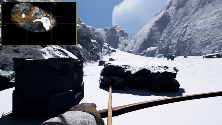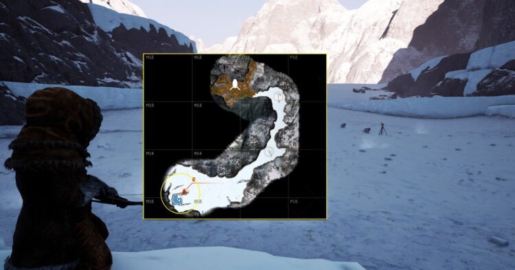 계곡을 따라 남쪽으로 계속 이동하여 첫 번째 스캔 위치(O14)를 찾습니다. 북극곰이 여기에서 스폰되므로 눈에 띄지 않도록 주의하십시오. 레이더가 멀어지면 다시 활성화하십시오.