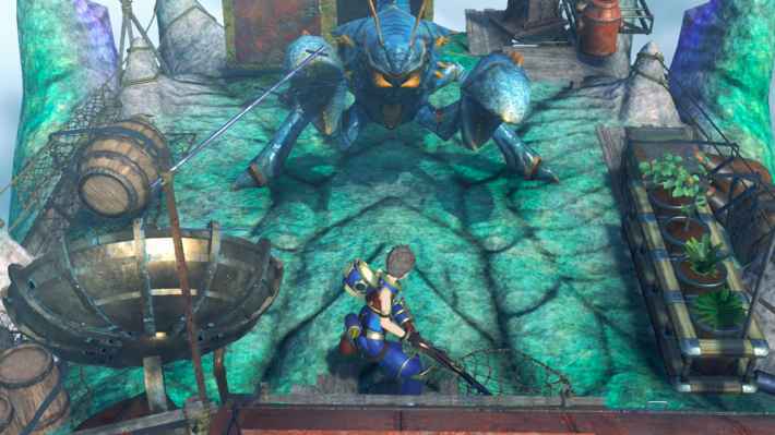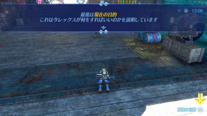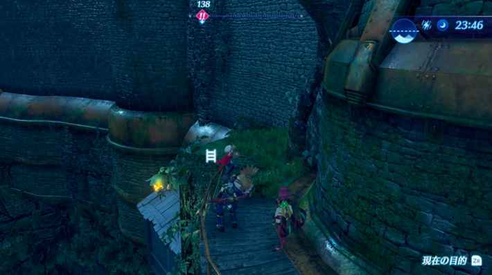 기본적인 싸움 방법을 여기서 다시 확인해 두자. A 버튼으로 발도하고, X 버튼으로 아츠 공격이다. 렉스의 '앵커샷'으로 낼 수 있는 녹색 회복 포트로 HP를 회복하면서 싸우자.