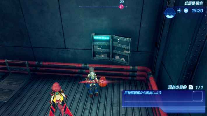 | 격벽을 열고 위로 올라 전 장판을 조사 하는 격납고 격벽 조작판을 조사해 문을 열다 |