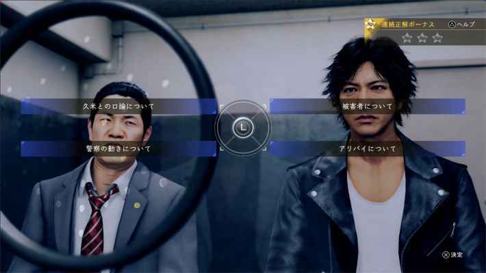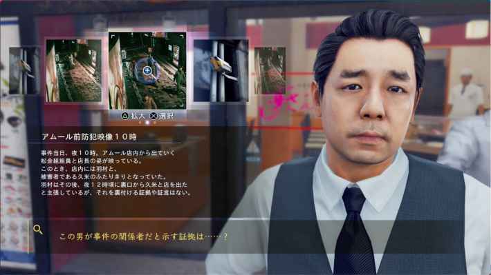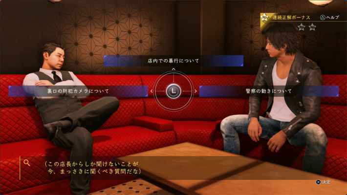 점장 밖에 알 수 없는, 「점내에서의 폭행」 「뒷문의 방범 카메라」를 들어보자. 「경찰의 움직임에 대해」를 먼저 물어 버리면, 연속 정답 보너스를 잃어 버린다.