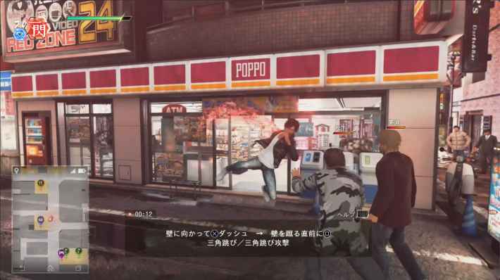 옥상 전투는 적의 수가 많기 때문에 쓰레기통이나 의자를 주워 공격을 전개하자. 적의 남은 인원수가 많은 가운데는 '일섬'이 아니라 '원무'가 싸우기 쉽다.