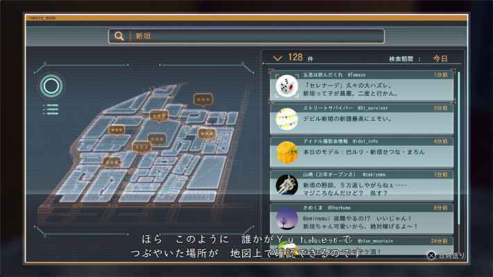 넷 카페에 있는 츠쿠모로부터 「Yutter」어플리를 가르쳐 준다. Yutter를 이용해 정보를 모을 수 있게 된다.