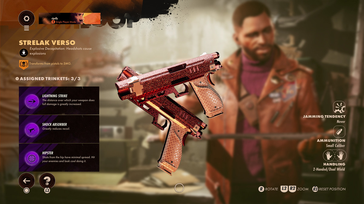 베스트 장신구 : Double Trouble Character Trinket (양손 사용 시 정확도 증가), Pistolero Character Trinket (양손 사용 시 데미지 증가), Shock Absorber (반동 감소)