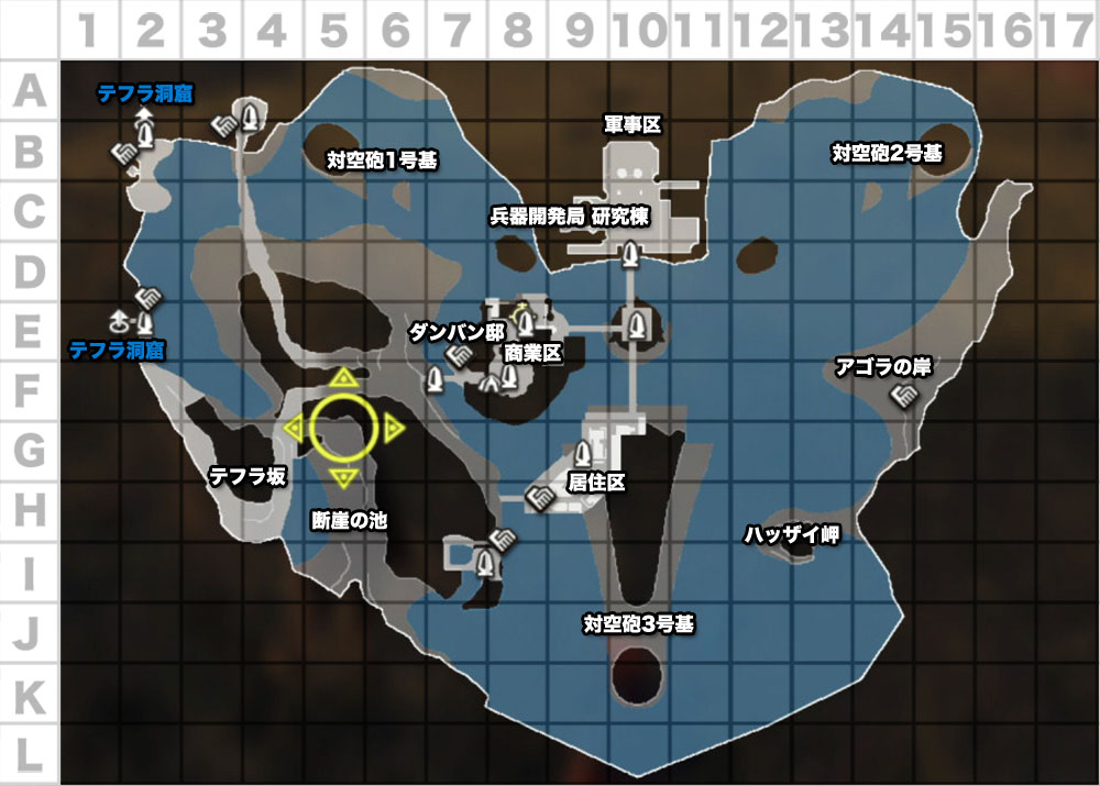 | B6 | 대공포 1호기 | E7 | 단방 저택 |