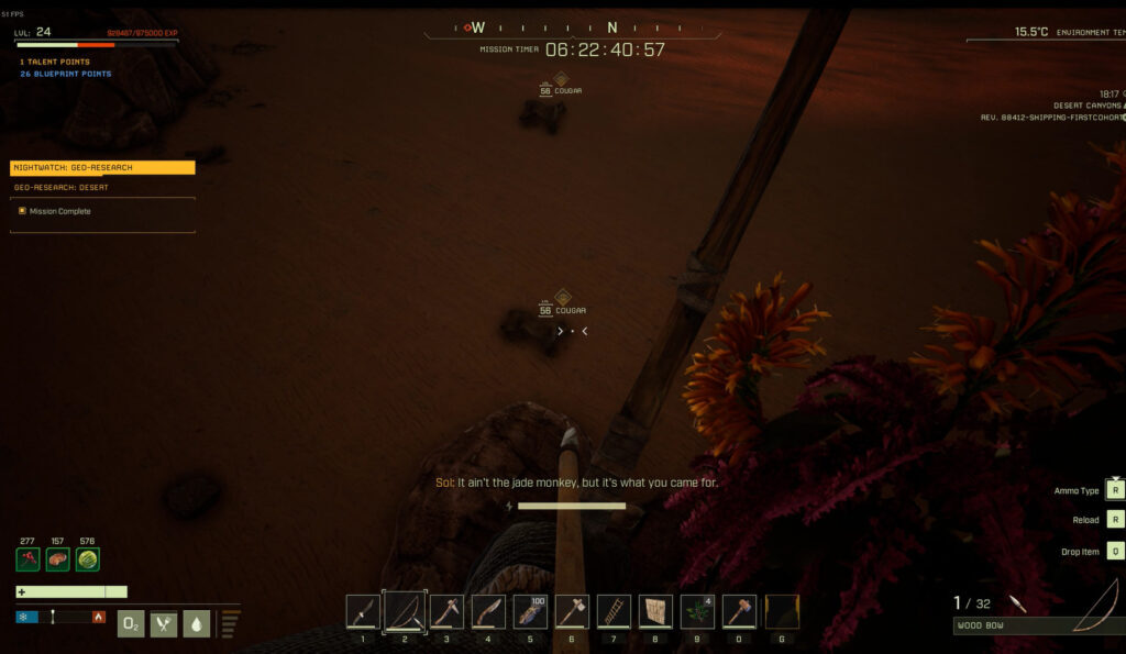 dropship으로 돌아가는 것은 꽤 오랜 시간이 걸리므 로 저장할작업장장비가 없다면(당신이 우리의 지시를 따랐지만 아무 것도 가져오지 않았기를 바랍니다),Bedroll을 집어들고 가난한 광부의 삶을 끝내는 것이 훨씬 더 빠릅니다. , Dropship 근처에서 리스폰됩니다.XP 부채를 잊지 마십시오. XP 막대가 적당히 채워져 있다면 레벨업을 끝내고, 그렇지 않으면 총알을 깨고 구식 방식으로 수송선으로 돌아가야 합니다.이미 들어간 지역 이외의 지역은 이 임무의 범위를 벗어났을 가능성이 높으므로 왔던 길로 되돌아가 리버랜드를 지나 사막을 지나는 것이 가장 좋습니다.