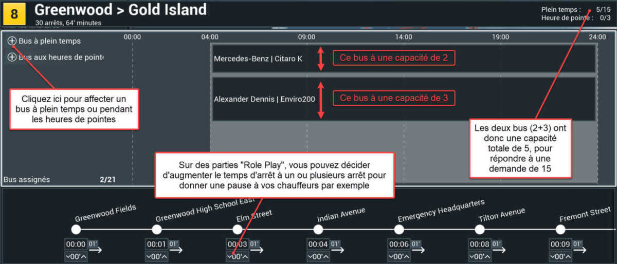 게임에는 2명에서 4명 까지의 버스가 있습니다 (나이가 많은 어린이용). 따라서 여행의 수요가 6인 경우 수요를 완전히 충족하고 이 여행에 사용할 수 있는 최대 수입을 생성하려면 여러 대의 버스(3인 2대의 버스, 2인 3인의 버스 등)가 필요합니다.