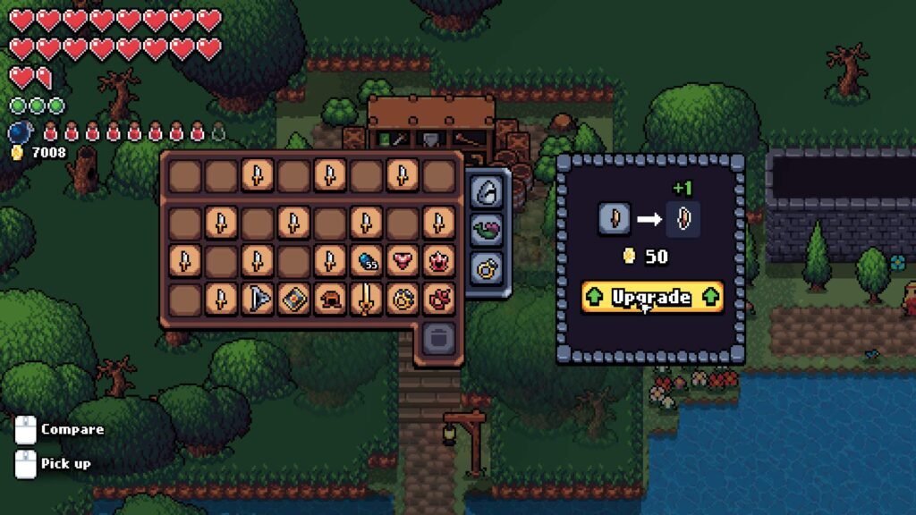 대장장이에게 말을 걸면 적은 비용으로 무기를 강화할 수 있는 화면이 표시되며 최대 5번까지 업그레이드할 수 있습니다.