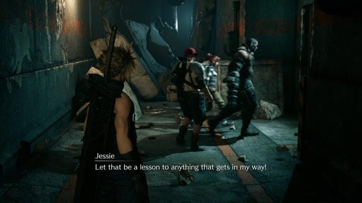 컷신이 끝나면 클라우드를 제어할 수 있습니다. Barrett을 따라가며 적과 싸우십시오. 격투기의 기본이라 어려운건 없습니다. 게임은 천천히 공격, 회피, 페어링의 기본을 가르치고 ATB 모드를 설명합니다. 전체 초기 시퀀스는 확장된 튜토리얼에 불과합니다.