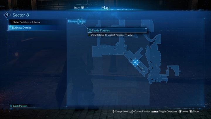 골목을 빠져나와 미션의 목적지를 향해 달려갑니다. 골목으로 들어가 계단을 타고 옥상으로 올라갑니다. 길 반대편으로 내려가서 달려가면 컷신이 발동됩니다. 그 후, 당신은 보안 요원과 싸울 것입니다. 클라우드로 공격하고 필요한 경우 치료를 사용하여 치유하십시오.