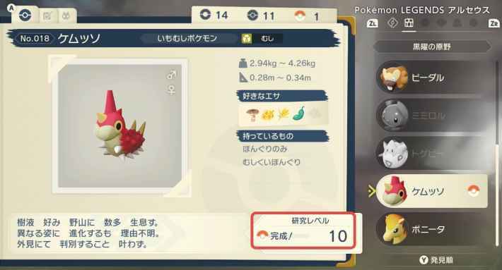 연구 레벨이 올라가면 대상 포켓몬에 대한 정보가 추가 등록됩니다. 체장과 무게, 좋아하는 먹이와 소지품 등 유익한 정보를 열람할 수 있게 된다.
