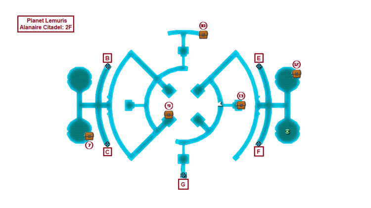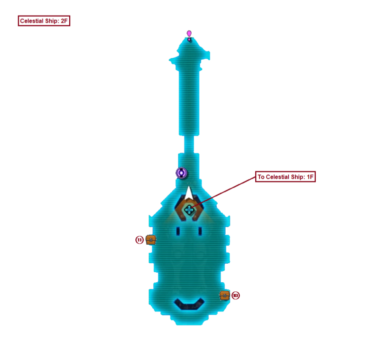 중앙 방으로 돌아가서 엘리베이터를 타고 Celestial Ship: 2F로 이동하십시오.여기에 보물 상자가 몇 개 더 있습니다.파워 팔찌는착용자의 HP와 MP를 증가시킵니다.계속하기 전에 여기에서 세이브 포인트를 사용하십시오.