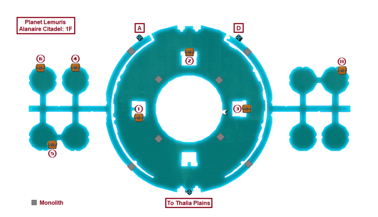 북동쪽 출구로 마을을 떠나십시오.Wind Swallow Valley는 탈리아 평원 동쪽에 있습니다.거기에 가기 전에 Alanaire Citadel에 들를 수 있습니다.Fire Ring을 사용하여 얼음 장벽을 제거하고 1층 동쪽에 있는 보물 상자를 엽니다.내부에는Dragon Scale x1및Fire Gem x1이 있습니다(Xbox 360 버전에서는 사용할 수 없음).