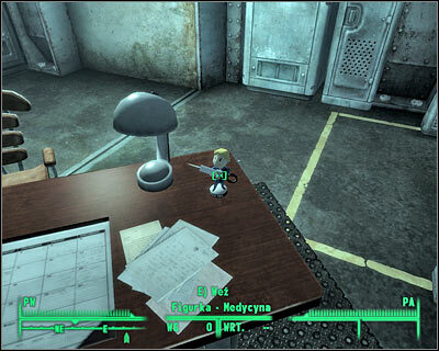 계속 북쪽으로 이동할 수 있습니다. 길을 따라 작은 식당을 지나게 됩니다(지도에서 5). 바퀴벌레를 죽 이거나 무시하십시오. 결국 당신은 Gomez (지도의 6)에 의해 중지될 것입니다. 당신은 그를 죽일 수 있습니다. 왜냐하면 당신은 그것에 대한 업력을 잃지 않을 것이기 때문입니다. 곧 당신은 Stanley 에 도착할 것 입니다. 피규어 를 가져오는 것을 잊었다면 의무실(지도에서 6)과 북부 사무실(지도에서 7)을 탐색하십시오 . 동쪽 문(지도의 9)으로 이동하여 Vault 101 - atrium 으로 이동하는 데 동의합니다 .