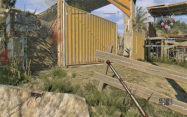 타워를 떠나 서쪽으로 가십시오. 현재 목적지는 빈민가에 있는 Rais의 주둔지 ( 지도의 Rais의 주둔지)입니다. 장소에 도착하면 재빨리 좀비들을 지나쳐 차를 타고 울타리를 넘어야 합니다. 다시 서쪽으로 가서 문을 두드리고 Rais를 만나는 컷신을 봅니다. 대화가 끝나면 주둔지 내부로 통하는 문을 찾으십시오. 여기서 카림에게 말을 걸면 첫 번째 퀘스트를 받게 됩니다.