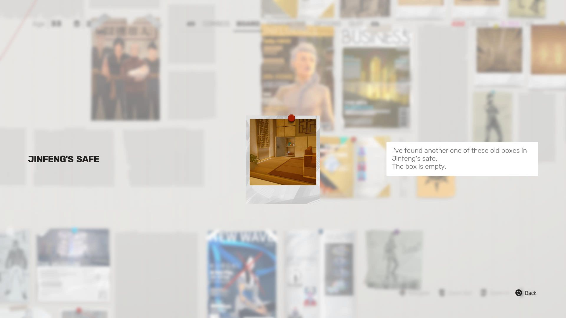 - 위치 : Tech Guy에게서 USB 드라이브를 얻은 후 Jinfeng의 컴퓨터와 다시 상호 작용합니다. 그러면 오른쪽 벽에 금고가 열리며, 그 안에는 두 개의 아이템이 들어 있습니다.