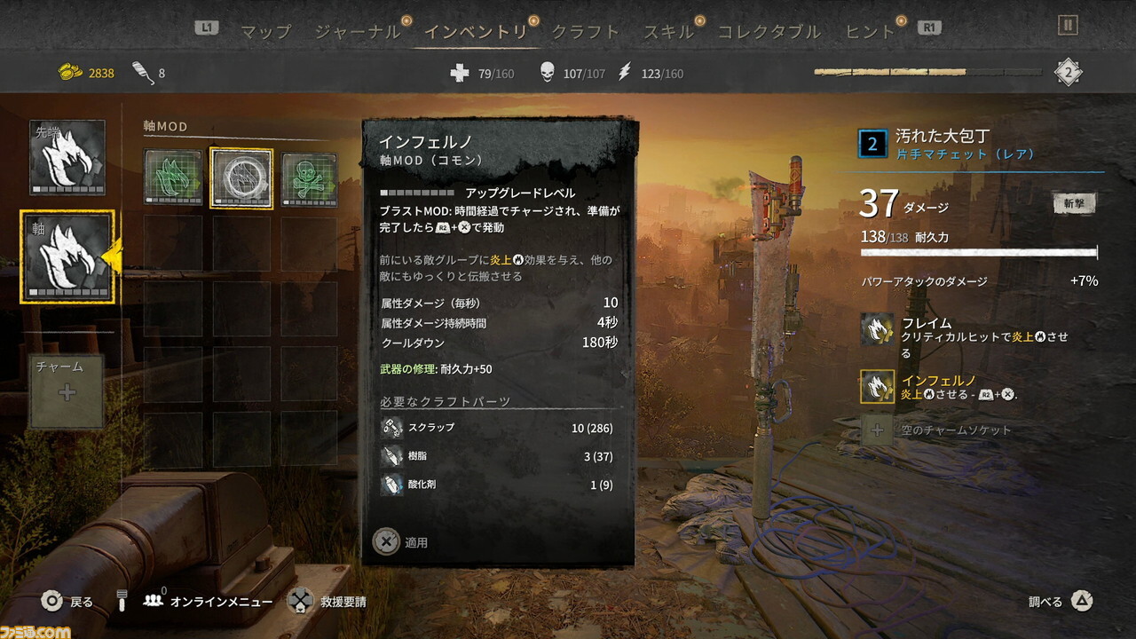 덧붙여서 내가 좋아하는 개조는, 플레임과 인페르노! 플레임의 효과는 위에서 설명한 대로. 한편의 인페르노는 쿨타임이 있지만, 상대를 임의로 염상시키는 공격을 사용할 수 있게 되는 것이다!
