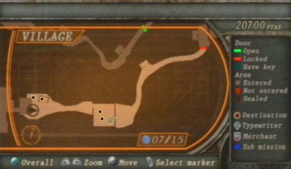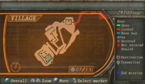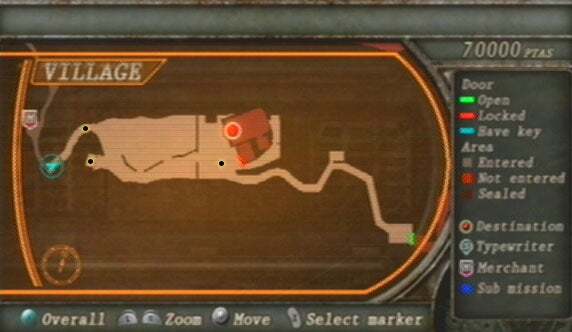 건물을 지었다면 미친듯이 질주할 준비를 하세요. 가나도스를 피해 마을을 돌아다니며 마을 주변의 수많은 아이템을 수집해야 합니다. 잡아야 할 탄약 과 체력 이 있지만 아이템 찾기를 마칠 때까지 북동쪽 건물에 들어가지 마십시오. 비축이 완료되면 북동쪽 건물로 들어갑니다.