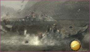 즉시, Del Lago는 떠 다니는 나무 위험으로 당신을 끌어 당깁니다. 보트를 오른쪽으로 넓게 당겨 주변을 둘러보세요. 위험 요소를 통과하면 괴물은 첫 번째 공격을 위해 물 속으로 잠수합니다. 보트 를 왼쪽이나 오른쪽으로 세게 잡아당겨 표면에 올라와 약한 보트를 물 때 짐승을 피하세요. 전투 내내 이와 같은 공격이 여러 번 있을 것이며 모두 같은 방식으로 피할 수 있습니다. 작살을 내려놓고 한 방향으로 세게 당기면(서두르지 마십시오) 괜찮을 것입니다.