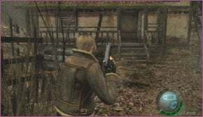 작은 까마귀 그룹을 통해 앞의 길을 걷는 것으로 시작하십시오. 오른쪽에 트럭이 있고 왼쪽에 집이 있습니다. 정문을 통해 집으로 들어가 모퉁이를 돌면서 Ganado를 격추할 준비를 하십시오.