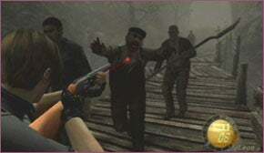 PRO 모드에서 할 수 있는 좋은 점은 좀비가 공격하지 않을 때까지 기다렸다가 공격을 피하기 위해 약간 뒤로 물러나서 칼로 그의 얼굴을 베고 그를 차고 칼이 내려져 있는 동안 계속 칼을 사용하는 것입니다. 그가 죽은 후 집 밖에 3마리의 가나도가 더 나타납니다. 그들을 만나기 전에 건물 뒤쪽의 계단으로 올라가 테이블에서 탄약 을 들고 근처의 창문을 통해 뛰어내립니다.