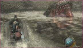 그러나 때로는 작살을 내려놓을 수 없으며 근처에 떠 있는 델 라고(Del Lago) 대신 레온이 작살을 잡고 있는 동안 장면이 잠시 고요한 것처럼 보일 수 있습니다. 결국 빨간색 화살표는 델 라고(Del Lago)가 멀리 다시 나타날 때 당신을 가리킬 것입니다. 매우 빠르게 델 라고(Del Lago)를 조준하고 작살 하나를 던져 괴물이 표면에 떠오를 때 못을 박으십시오.