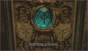 좀비가 아닌 두 사람 뒤에는 조작할 수 있는 이상한 메커니즘이 있는 받침대가 있습니다. 주 묘지에 있는 쌍둥이 묘비의 상징과 일치하는 3개의 상징을 밝혀야 합니다. 그러나 트릭은 다이얼을 3과 4씩만 움직일 수 있으며 다이얼이 멈추는 기호가 무엇이든 자동으로 켜집니다(또는 꺼집니다). 세 가지 기호를 적절하게 켜려면 다이얼을 다음 순서로 돌립니다. 3단계(3), 4단계(4), 3단계(3), 3단계(3), 4단계(4), 3단계(3) , 세 증분(3). 세 가지 기호가 모두 켜지면 메커니즘이 열리고 다른 보석( Beerstein ) 과 결합할 수 있는 귀중한 보석을 줍니다 .