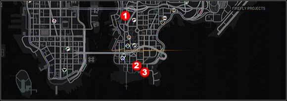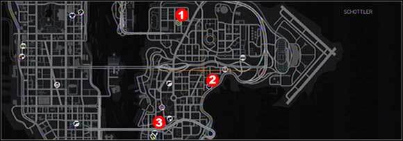 매니(1)는 딜러 몇 명이 죽기를 원합니다. 그들 중 하나를 따르되 너무 가까이 가지 마십시오. 창고에 도착하면 (2) 차에서 내려 골목으로 들어갑니다. 위층으로 올라가 창고 지붕으로 가는 인도교를 찾으십시오. 이제 창을 찾아 산탄총을 손에 들고 아래로 뛰어내립니다. 가장 가까운 적을 죽이고 상자나 기둥 뒤에 숨으십시오. 나머지 딜러를 쏘고 밖으로 나가십시오(문을 향해 쏘기). 보상: 1000$.
