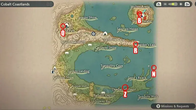 - 위치: Cobalt Coastlands의 Molten Arena로 이동하십시오. 지도의 오른쪽 상단에서 Alpha Ninetales 스폰 근처의 화산을 보십시오. 그것을 잡으려면 Jett Ball이 필요할 수 있습니다.
