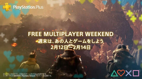 플레이스테이션의 온라인 서비스 'PlayStation Plus'에 가입하지 않은 사람도 온라인 멀티플레이를 무료로 체험할 수 있는 'FREE MULTIPLAYER WEEKEND'가 3일간에 걸쳐 개최된다. 온라인 멀티 플레이 대응 타이틀을 즐길 수있는 기회가되어 주말은 멀리 떨어져있는 친구와 함께 게임을 플레이 할 수 있습니다.