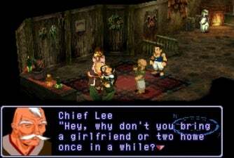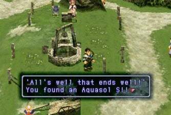 마을을 탐험해보세요. 암소와 함께 있는 여성에게 말을 걸고 무료 Aquasol 에 대해 이상하지 않다고 말하십시오 . 다음으로, Fei의 불길한 사색에 신경 쓰지 않고 마을 중앙에 있는 우물을 반복해서 뛰어내립니다. Eyeball , Aquasol S 및 Power Ring 을 얻을 수 있을 만큼 충분히 이 작업을 수행하십시오 . 이 족장의 집 뒤에 있는 노인과 대화하여 아쿠아졸 2개를 더 얻으십시오 .