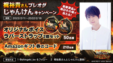 앱 스토어 예약&게임 앱 공식 Twitter 계정(@shingeki_bo)을 팔로우&리트윗하여 응모가 완료. 본 캠페인은 매일 도전할 수 있다.