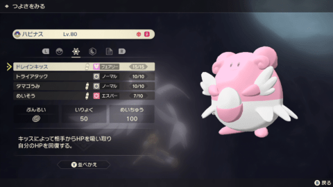 직접 데미지를 주지 않는 기술 전반 이 분류되어 있어 능력의 상승이나 회복 등이 주된 역할입니다.