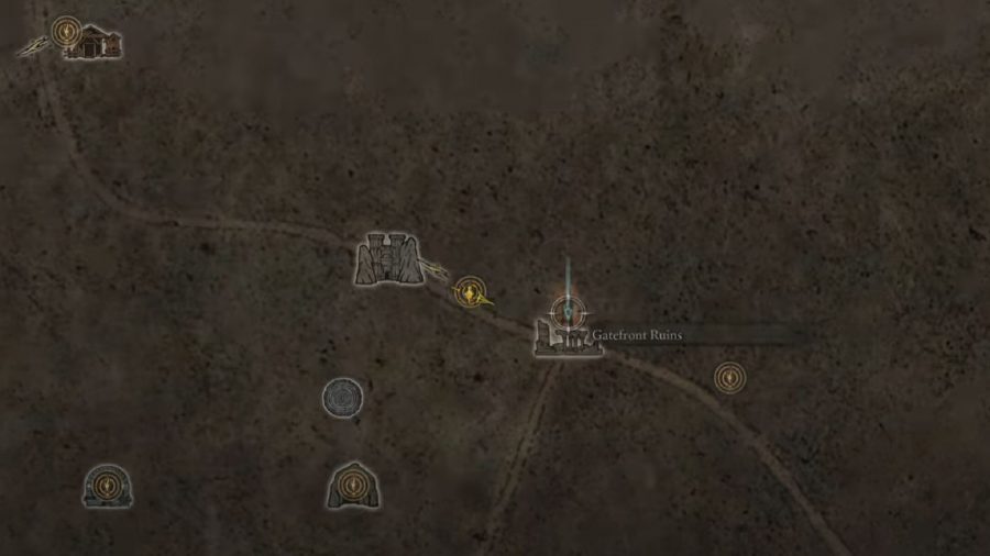 Limgrave, West Map Fragment는 적 진영의 큰 기둥 옆에 있는 Limgrave의 Gatefront Ruins에서 찾을 수 있습니다.