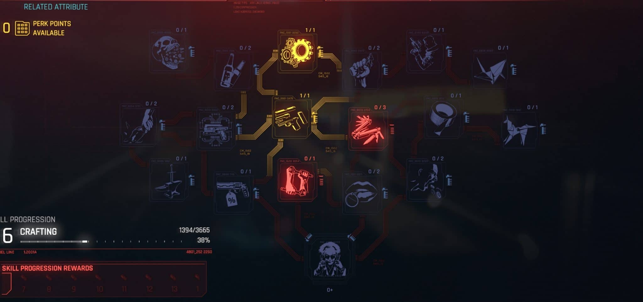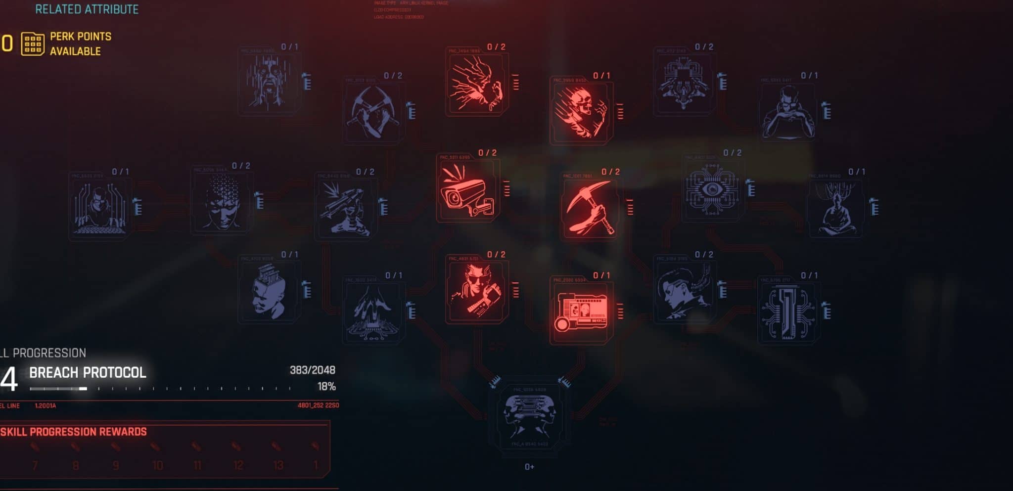속성과 기술은 함께 사용됩니다. 특전은 스킬 안에 있습니다. 특정 속성 레벨의 특전 범주에 더 많은 포인트를 넣을수록 더 많은 특전이 잠금 해제됩니다. 각 범주에 더 많은 점수를 넣을수록 Cyberpunk 2077의 캐릭터는 더 강해집니다.