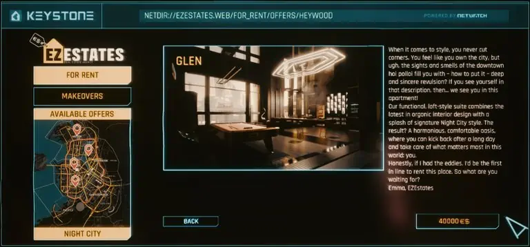 추가로 임대하는 아파트는 훌륭한 역할 놀이 기능이지만 나이트 시티를 빠르게 이동할 수 있으므로 필수품이라기보다는 롤플레잉 사치품 구매에 가깝습니다.