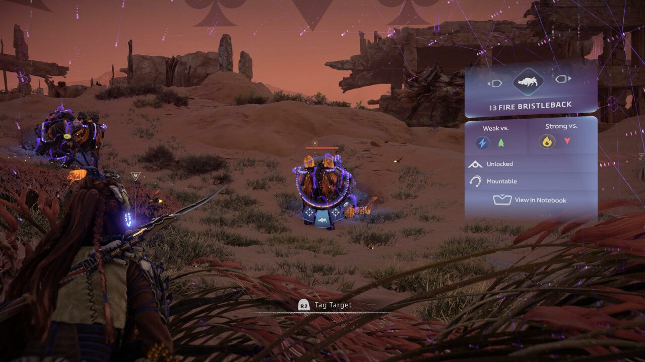 Horizon Zero Dawn에서처럼 Aloy는 초점을 맞춰 적의 기계를 스캔할 수 있습니다. 그렇게 함으로써 그녀는 그들의 움직임을 추적하고 가장 좋은 공격 방법을 알아낼 수 있습니다.