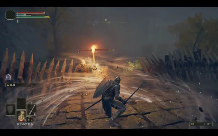 왼손에 방패를 가지고 있는 경우, 파리 등 방패의 전기가 우선해서 발동한다. 그 때문에 무기의 전기를 발동시키고 싶은 경우는, 무기를 양손 가지고 방패를 한번 떼자.
