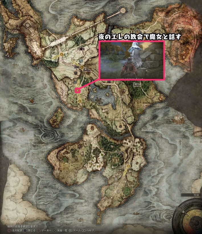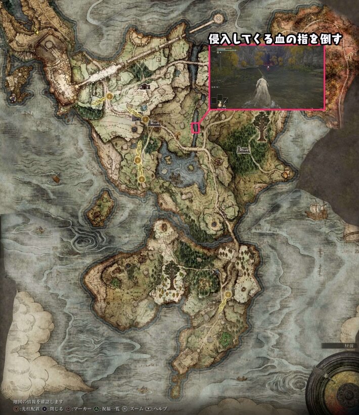 이 벌이 방법은 말이 필수이므로, 「게일 요새의 북쪽」까지 향하는 길의 「칸몬 앞」에 있는 축복을 접해 말을 입수 하자. 입수하면 이미지의 루트 거리로 진행하면 목적지에 도착한다. 벌써 말을 가지고 있고, 축복 '게일 요새의 북' 해방하고 있는 사람은 워프로 이동해 OK다.