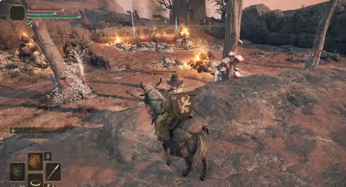무기에 공격 후에도 타격하면, 폭발에 휘말리거나 주위의 적으로부터의 공격을 받고 버리거나 매우 위험. 롤링 버튼 연타로 전방에 롤링을 3회 정도 넣고 말을 타고 축복까지 빠르게 돌아가자 . 축복으로 돌아오면 축복으로 쉬고 적을 리스폰시켜, 나머지는 반복할 뿐!