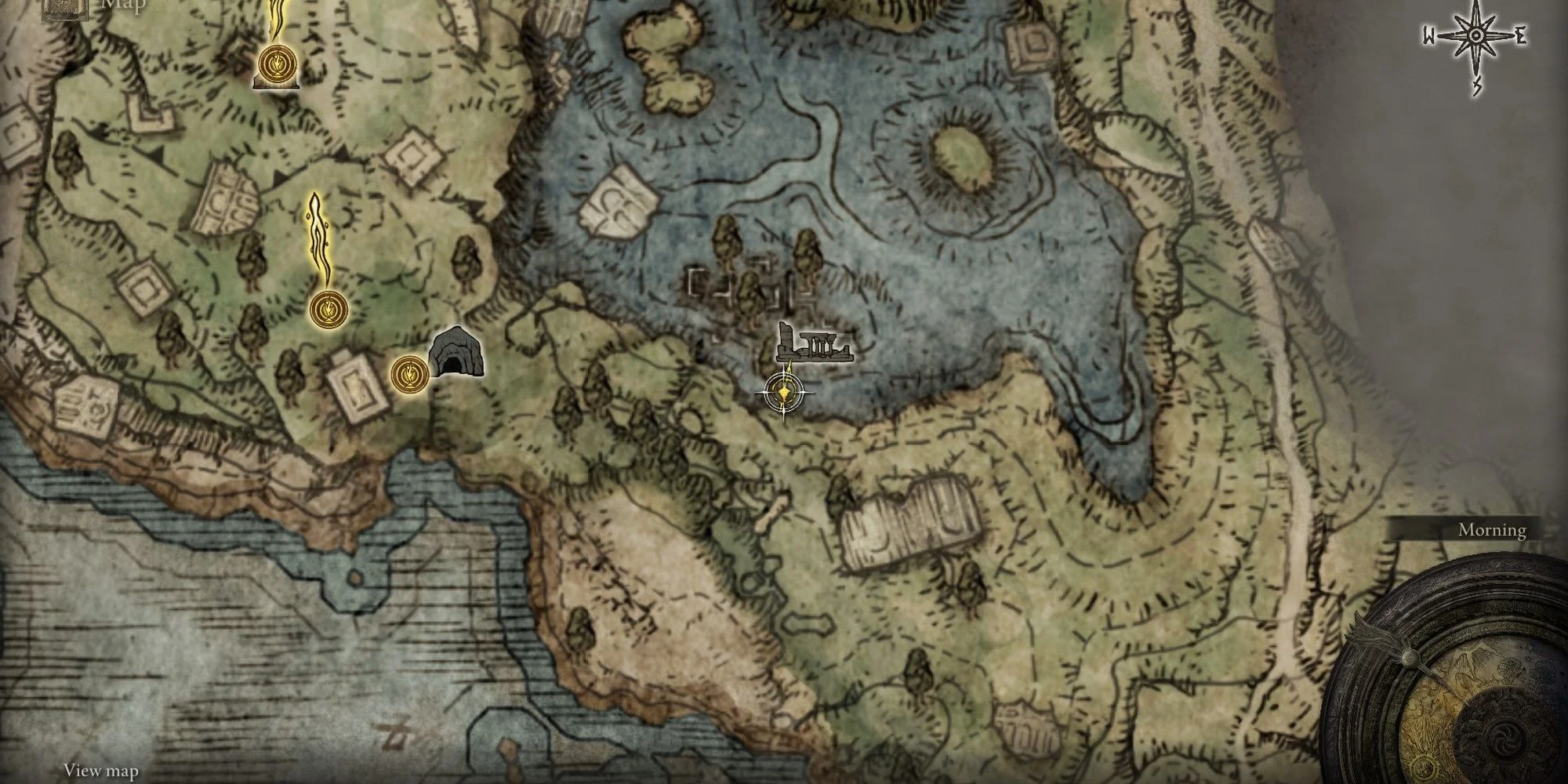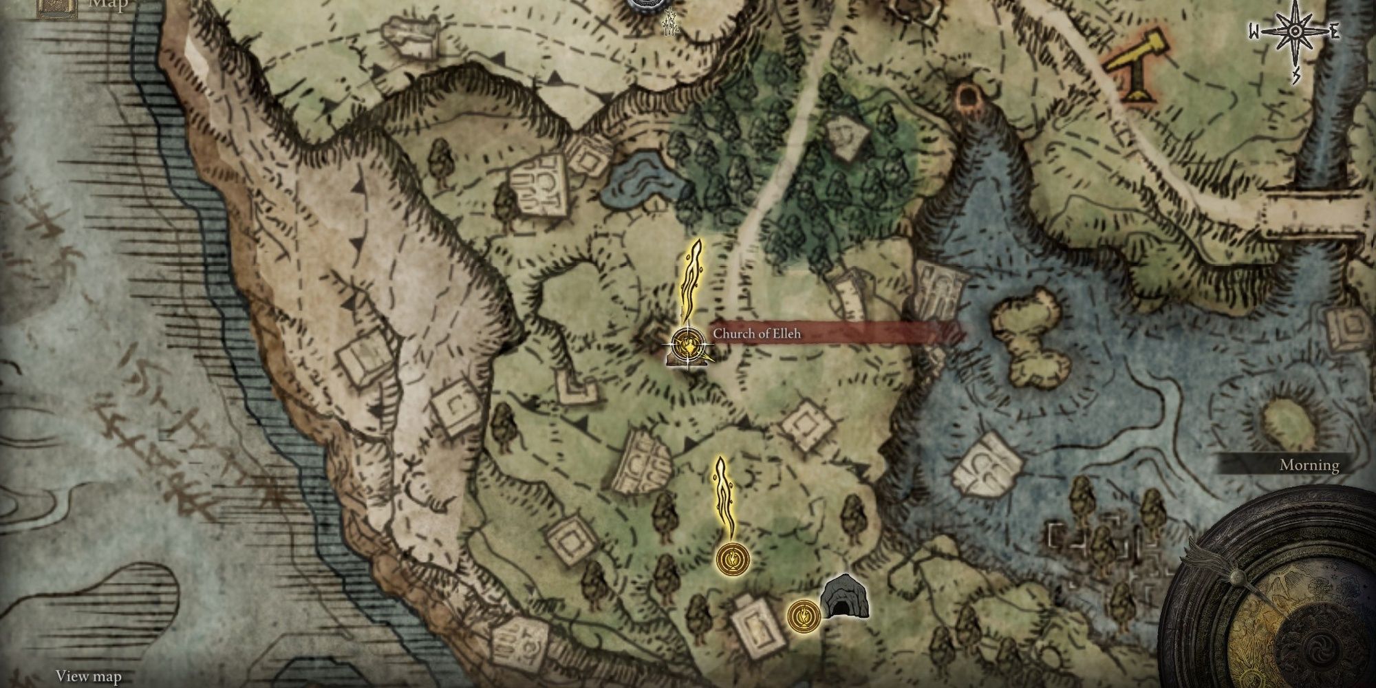Elleh 교회의 남동쪽에 있는 Dragon-Burnt Ruins에서 쌍검을 찾을 수 있습니다. 교회에서 말을 타고 인근 호수의 남쪽 가장자리를 따라 달리십시오. 일련의 파괴된 건물이 보일 것입니다. Torrent에 있는 동안 폐허의 남쪽 끝으로 가서 벽 중 하나를 두 번 뛰어 넘고 싶습니다. 이제 폐허의 한적한 구역 안에 있어야 합니다. 폐허 내부의 계단을 내려가 상자를 찾으십시오. 상자를 열어 새로운 쌍날검을 획득하세요.