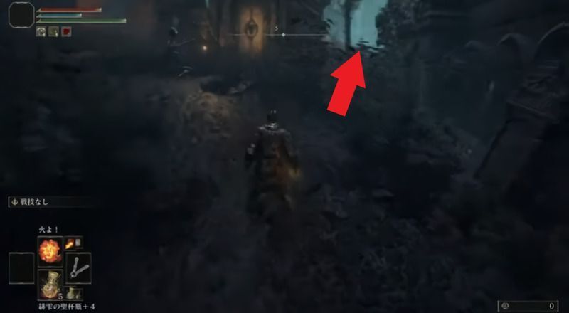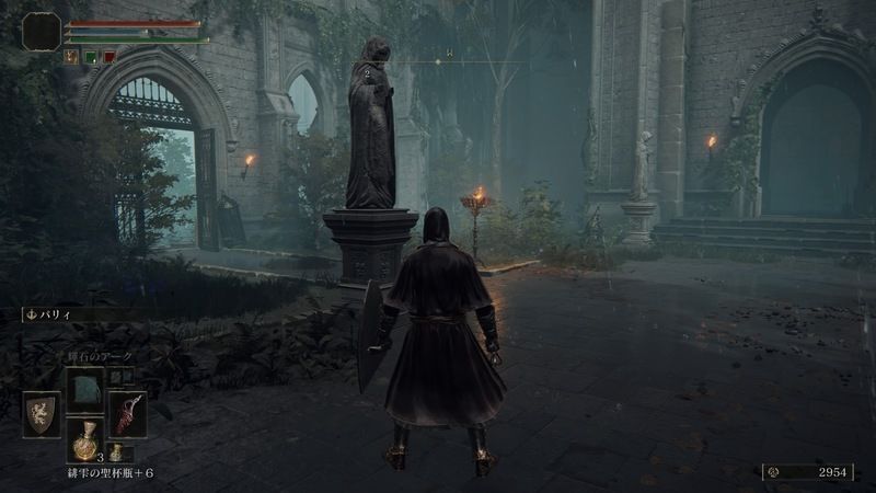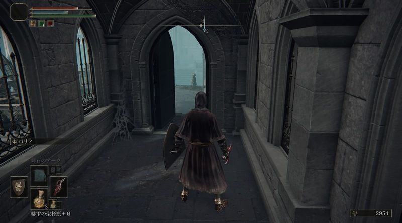 어두운 맵이므로 알기 힘들지만, 다리를 건너 오른쪽을 똑바로 진행하는 곳의 절벽을 내리면 "칼리아의 기사" 세트를 입수할 수 있습니다.