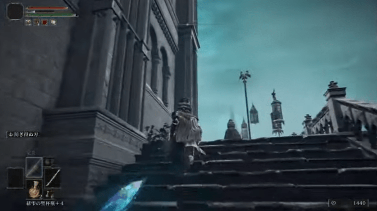 광장 왼쪽의 계단을 오른 곳에서 지붕으로 뛰어 내리면 다양한 아이템을 회수할 수 있는 옆길로 나갈 수 있습니다.