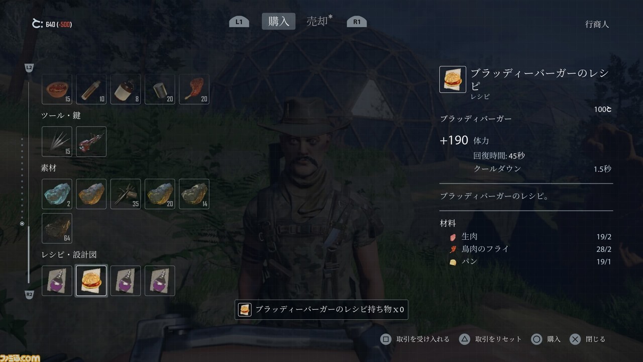 포스트 포칼립스한 세계를 무대로 한 오픈 월드의 묘미라고 해도 좋으며, 폐허나 길가에 배치되어 있는 아이템의 회수 요소도 있습니다. 이러한 아이템이 무기·제트팩의 강화나, 회복 아이템·요리의 생성(크래프트)에 필요한 소재가 되어, 전투에 도움이 되는 것은 물론, 성능이 좋은 무기나 요리는, 각지에 있는 상인에게, 고가 에서 구입할 수 있습니다.