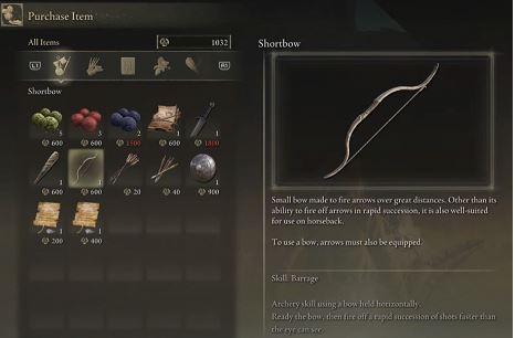 활은 장거리 전투나 잠입 전투에 매우 유용합니다. 또한 빠른 발사 화살을 사용하여 이동성을 높일 수 있습니다. 말에 활을 사용할 수도 있습니다. 같은 상인에게서 화살을 구입할 수도 있습니다.